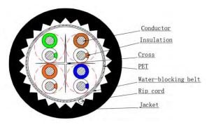 • Water block tape provides moisture resistance.